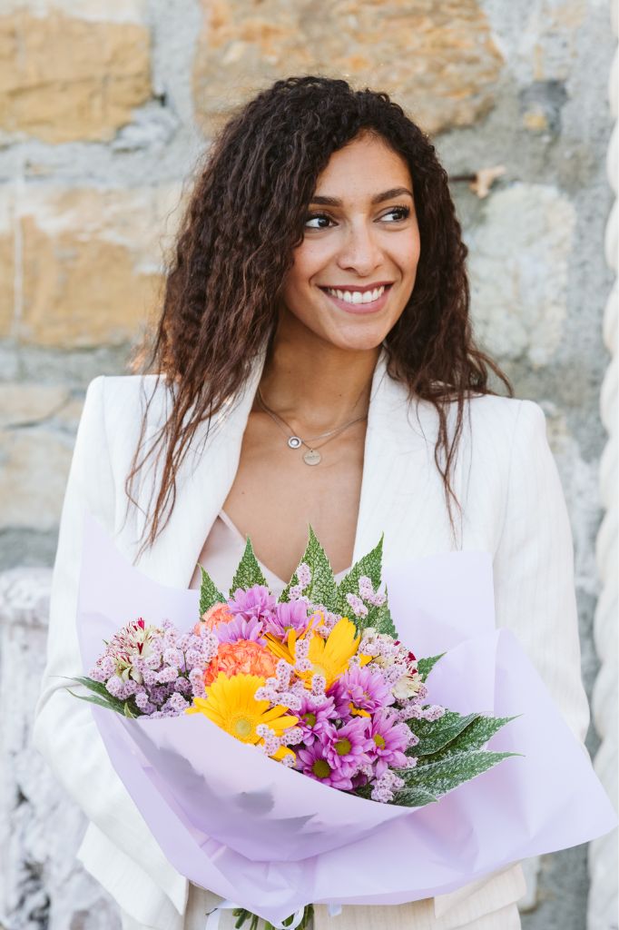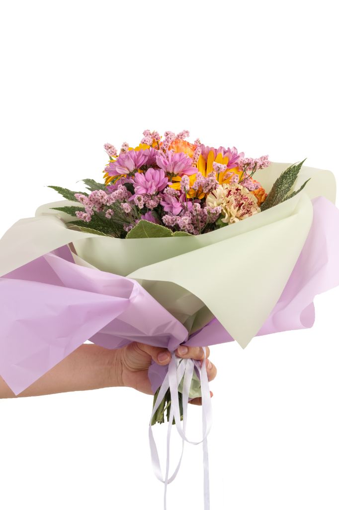 • il mazzo di fiori sarà confezionato con carta decorativa e nastro a tua scelta tra quelli disponibili.